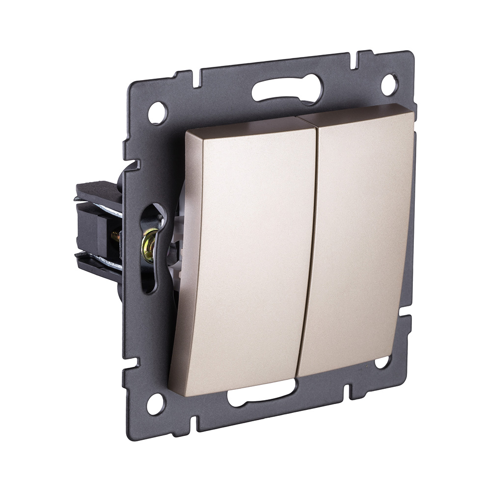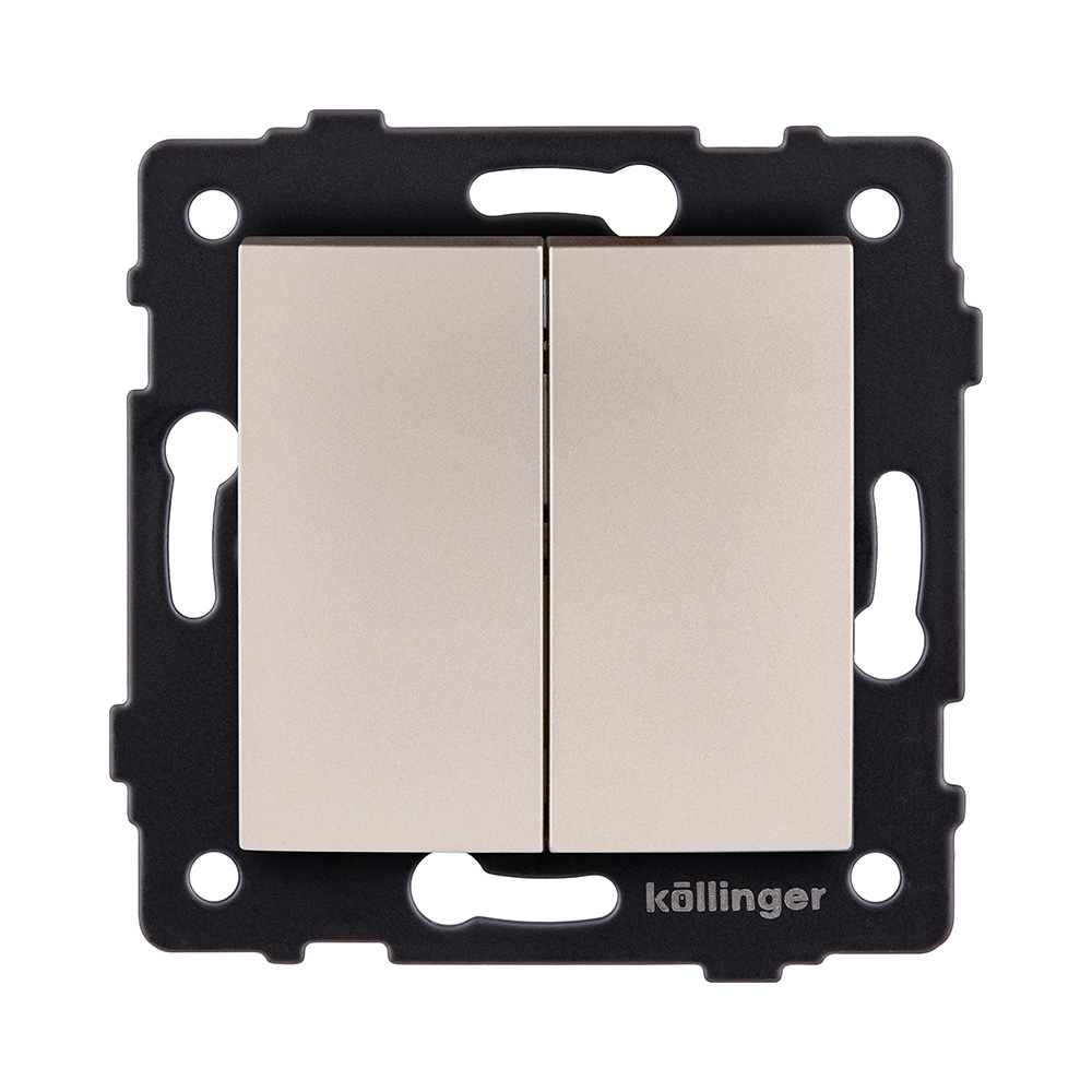 Двухклавишный проходной выключатель 10А/250В, изогнутой формы, золотой Kollinger для Reflex, Aspekt, Eleganz REA-R-009GD