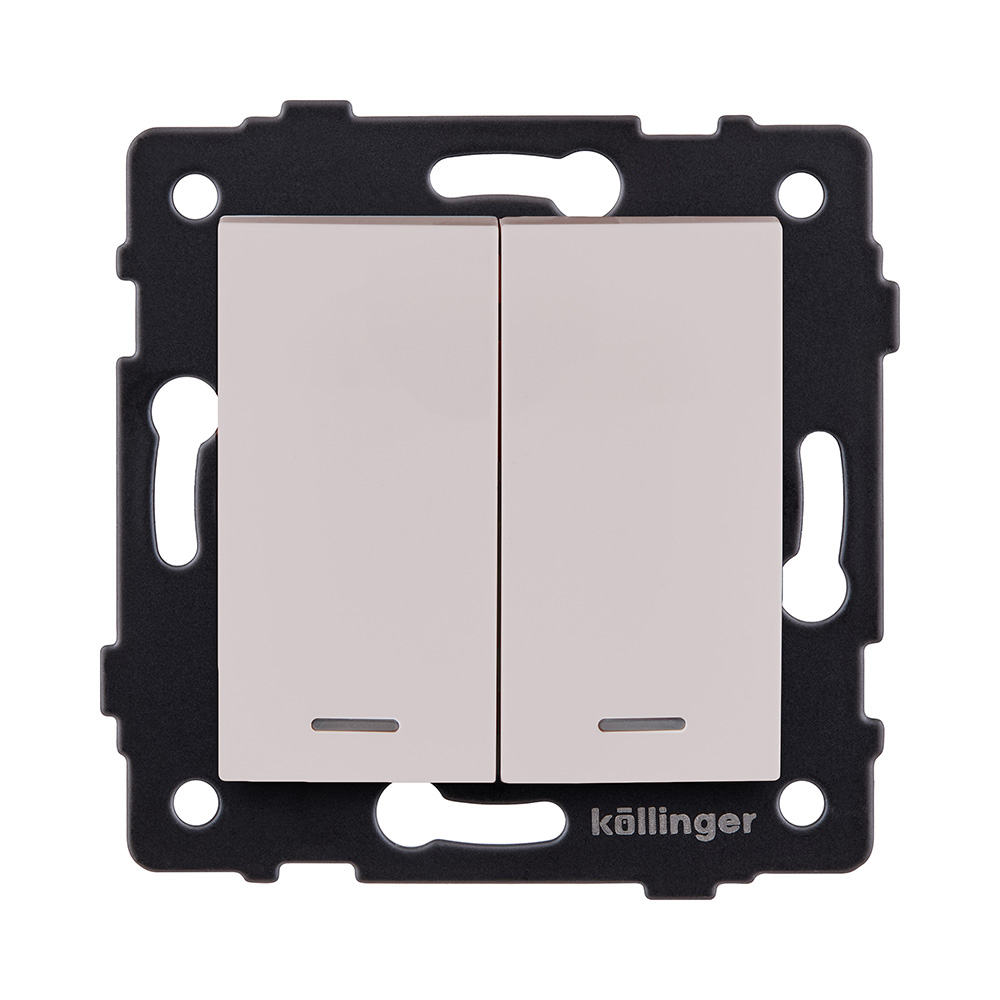 Двухклавишный проходной выключатель 10А/250В с подсветкой, изогнутой формы, кашемир матовый Kollinger для Reflex, Aspekt, Eleganz REA-R-010CM