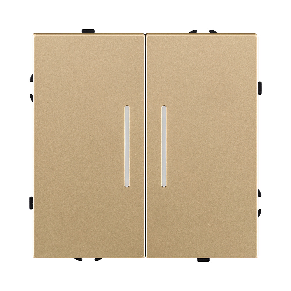 Двухклавишный проходной выключатель 10А/250В с подсветкой золотой Kollinger Eclipse EC-011GD