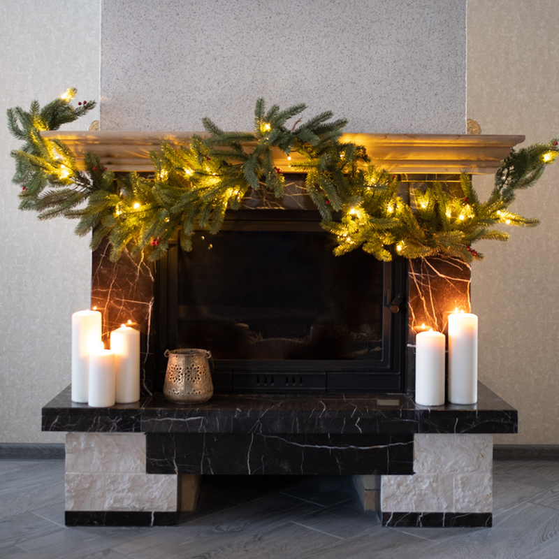 Еловый шлейф с ягодами и гирляндой NEON-NIGHT 1.8 м, 30 LED, 31 В, литой, теплое белое свечение NEON-NIGHT 307-113
