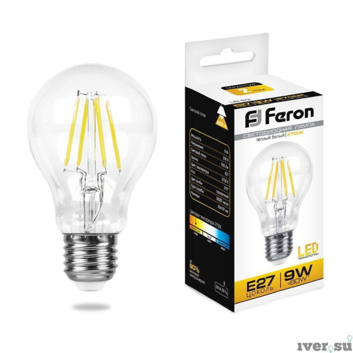 Светодиодная лампа 230V E27 2700K Feron 25631 имеет основные параметры: цоколь E27, мощность 9 Вт, цвет Прозрачный.