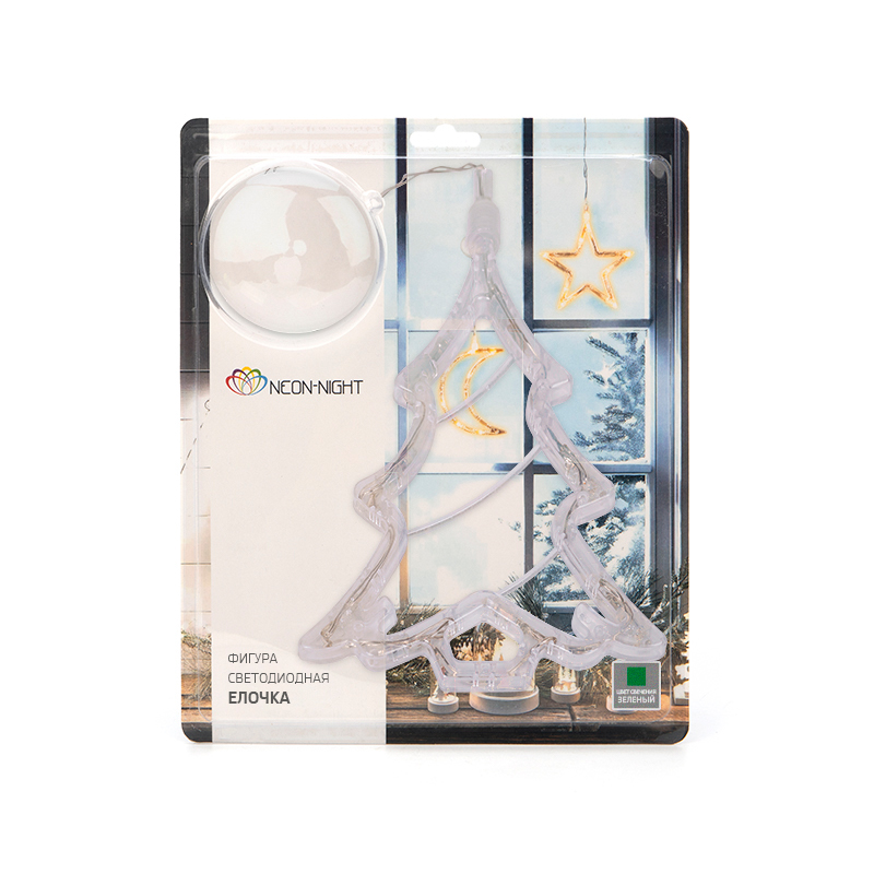 Фигура светодиодная Елочка на присоске с подвесом, цвет зеленый NEON-NIGHT 501-017 имеет основные параметры:, мощность 1 Вт Вт, влагозащита IP20.