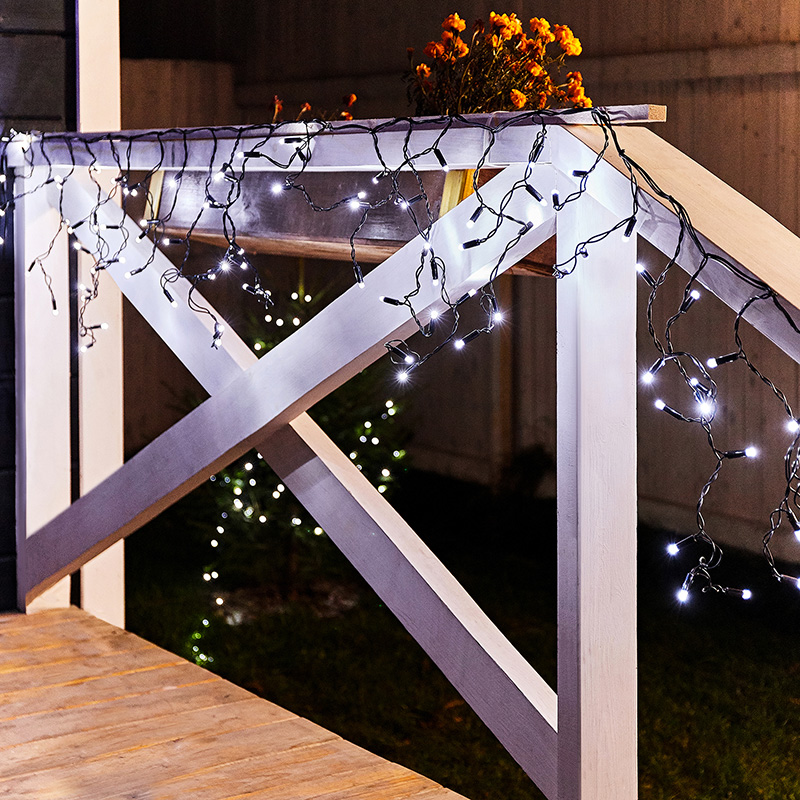 Гирлянда Айсикл (бахрома) светодиодный, 2,4 х 0,6 м, черный провод, 230 В, диоды белые, 88 LED NEON-NIGHT NEON-NIGHT 255-032 соответствует параметрам:, мощность 5,5 Вт Вт, влагозащита IP65.