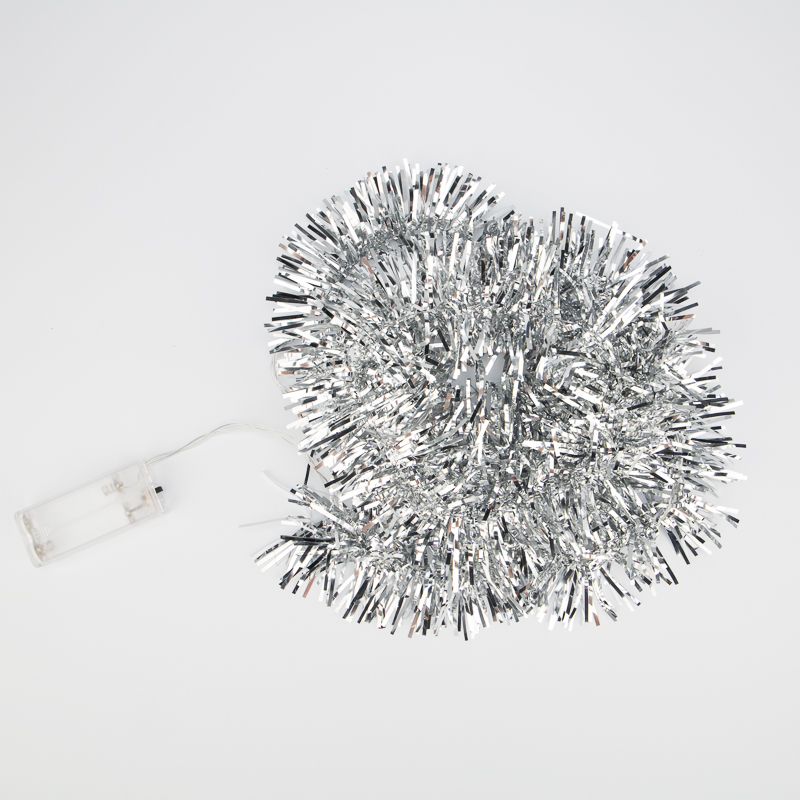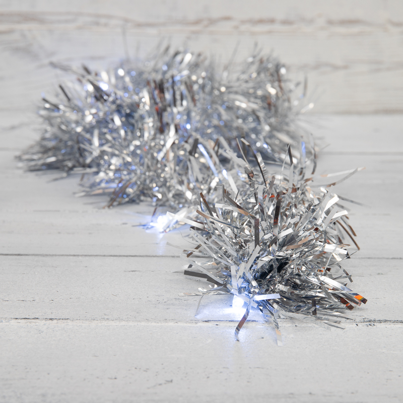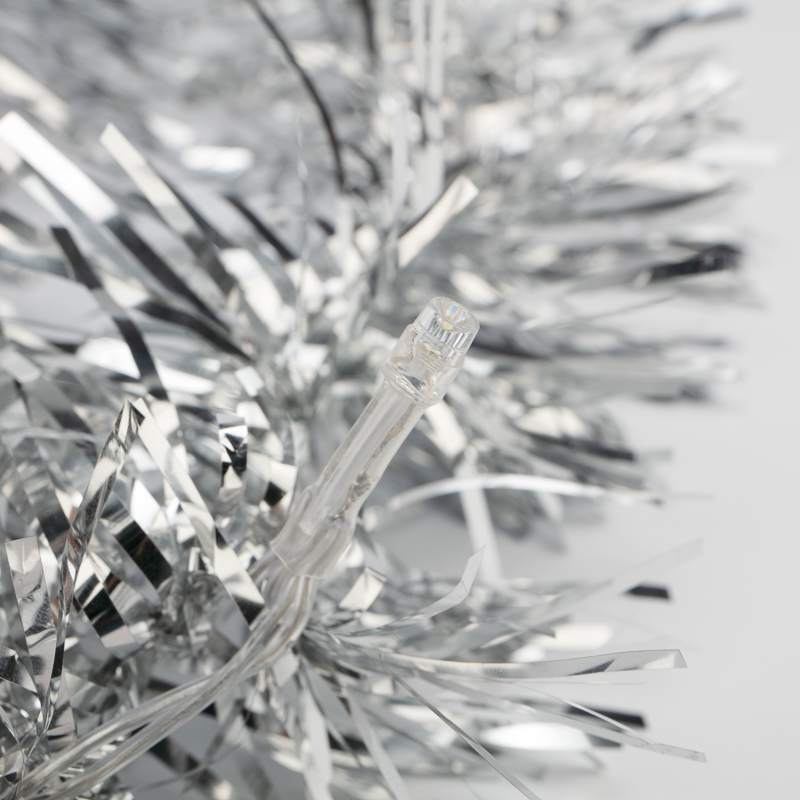 Гирлянда светодиодная Мишура серебряная 10 LED 1,5 м, прозрачный ПВХ, белый свет свечения, 2 х АА (батарейки не в комплекте) NEON-NIGHT NEON-NIGHT 304-011