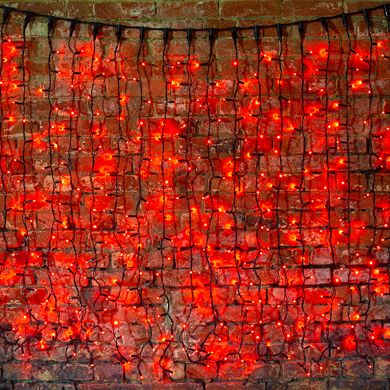 Гирлянда Светодиодный Дождь 2х1,5м, постоянное свечение, черный провод КАУЧУК, 230 В, диоды КРАСНЫЕ NEON-NIGHT 237-122