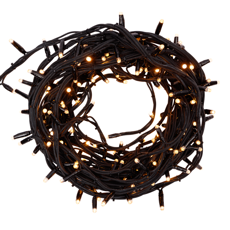 Гирлянда Твинкл Лайт 20 м, черный КАУЧУК, 240 диодов, цвет ТЕПЛЫЙ БЕЛЫЙ NEON-NIGHT 303-326