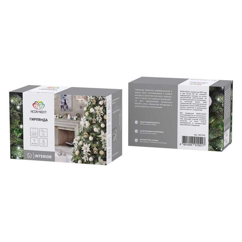 Гирлянда Твинкл Лайт 4 м, темно-зеленый ПВХ, 25 LED, цвет ТЕПЛЫЙ БЕЛЫЙ NEON-NIGHT 303-016 обладает следующими основными характеристиками:, мощность 2 Вт Вт, влагозащита IP20.