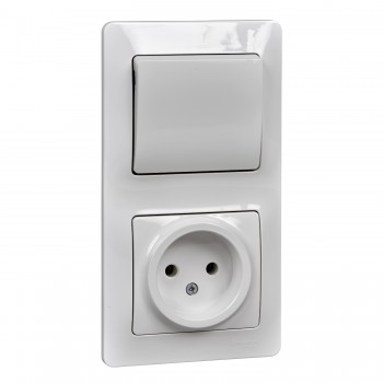 Блок: розетка + 1-клавишный выключатель белый Systeme Electric (Schneider Electric) Glossa GSL000160