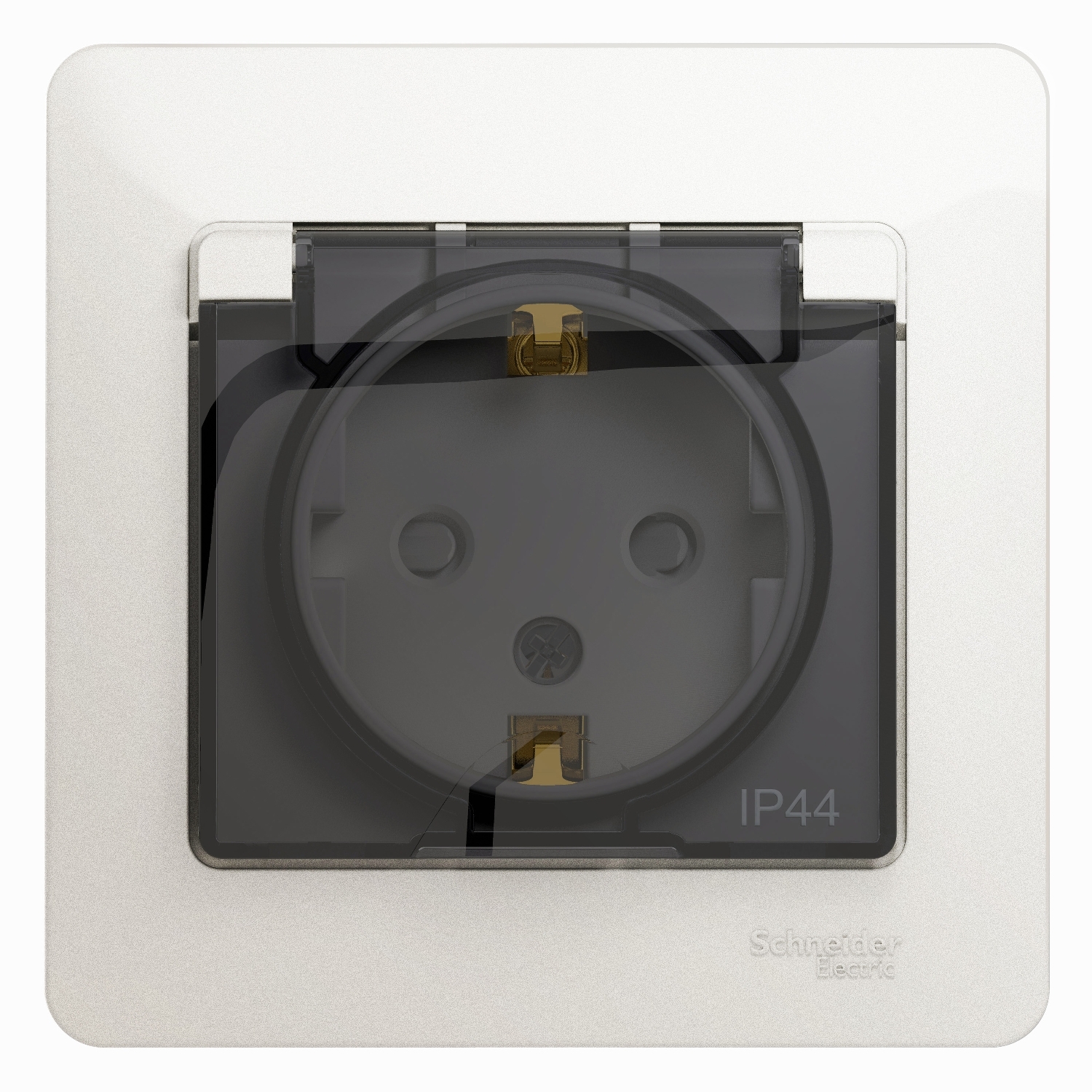 Розетка с заземлением со шторками с крышкой, в сборе,16А IP44, перламутр Systeme Electric (Schneider Electric) Glossa GSL000648