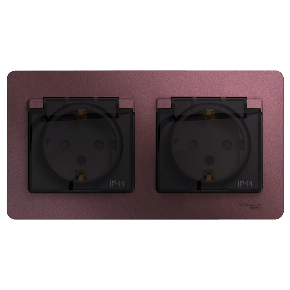 Розетка двойная с заземлением, со шторками, в сборе, IP44, баклажановый Systeme Electric (Schneider Electric) Glossa GSL001147