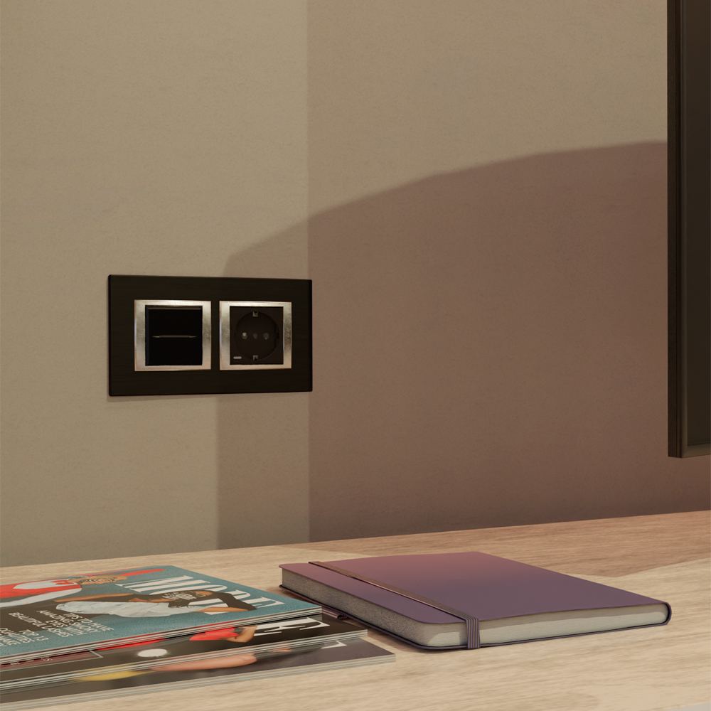 HS4003M2AN Axolute. Переключатель аксиальный одноклавишный 10А 250В. Автоматические клеммы. 2 модуля. Антрацит Bticino