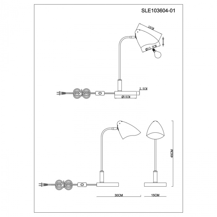 Настольная лампа SLE103604-01 от бренда Evoluce из коллекции Satta. Размеры: длина 300 мм, высота 450 мм, ширина 150 мм. Настольные лампы Evoluce SLE103604-01 созданы с применением высококачественных и прочных материалов, таких как: металл, плафон - Металл.