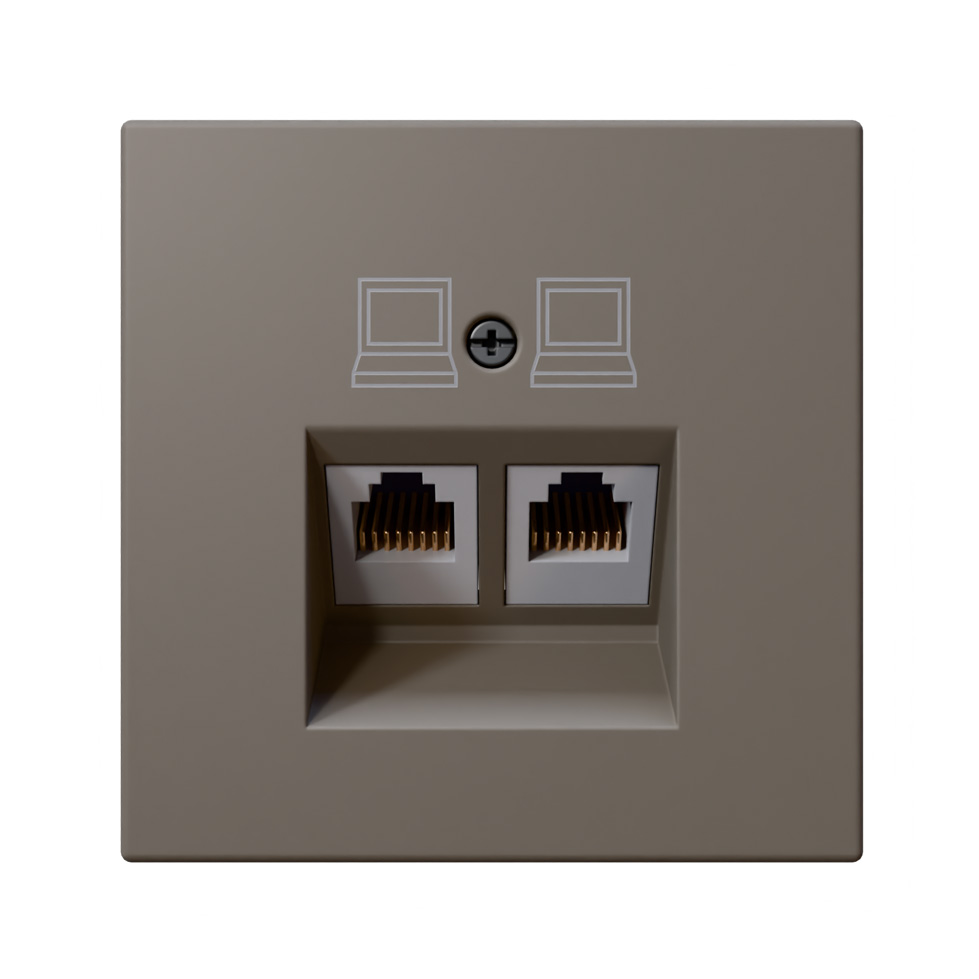 Интернет-розетка RJ45 двойная с накладкой, FD-Series матовый Тауп (soft touch) Jasmart FD6106PTM