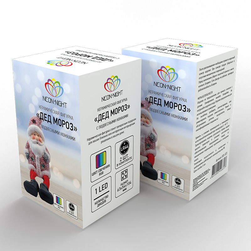 Керамическая фигурка Дед Мороз с подвесными ножками 6.3х5.4х10.4 см NEON-NIGHT 505-023 обладает следующими основными характеристиками:, влагозащита IP20.