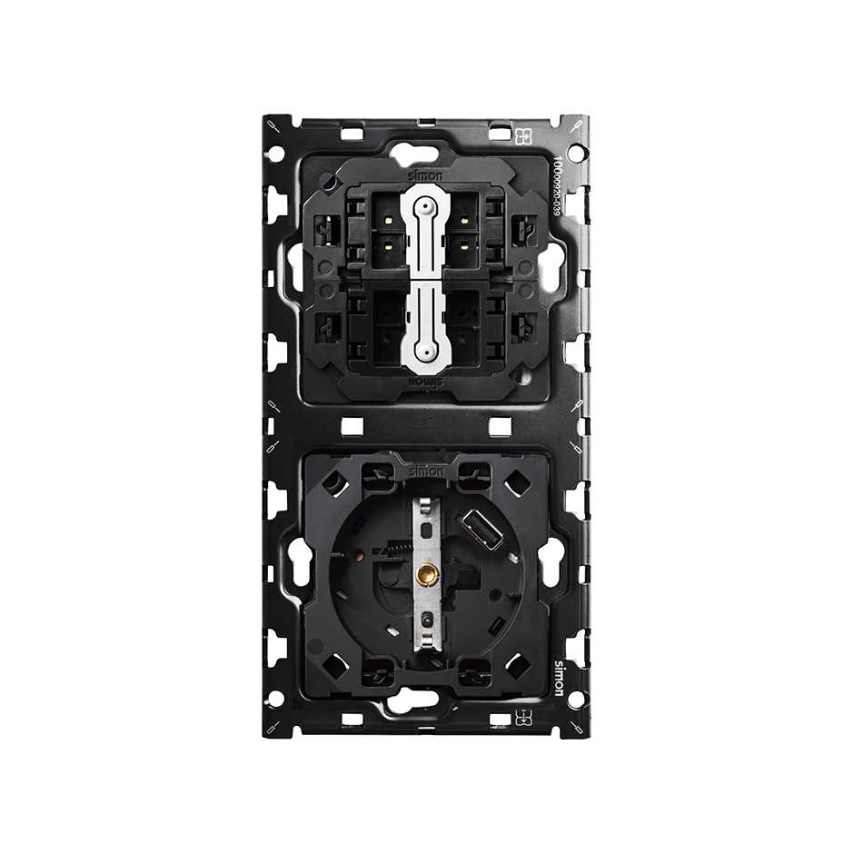 Кит на 2 поста, механизмы: 1 розетка Schuko 2Р+Е 16A 250В~ с з/у USB Smart Charge 2.1А + 2 переключателя (проходных) + суппортSimon 100, 10010218-039