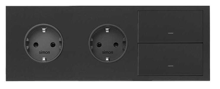 Кит на 3 поста, фронт: накладка на 2 розетки Schuko + 2 клавиши выключателей черный матовый Simon 100, 10020310-238