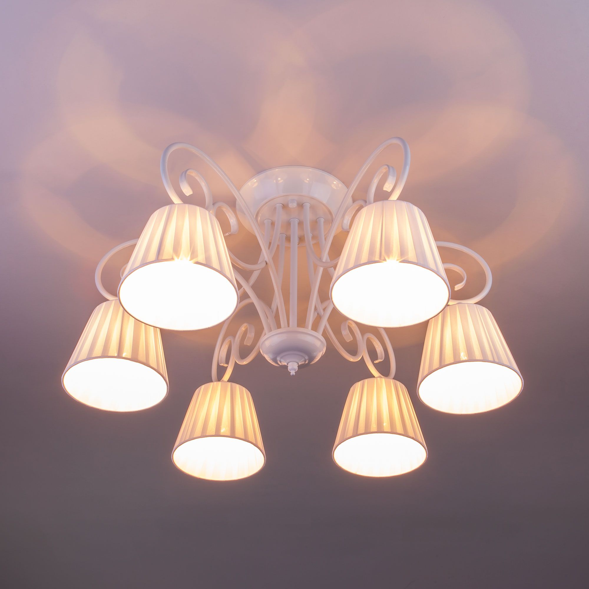 Задействуются лампы цоколя E14 мощностью 40 Вт, в количестве 6 шт. Основной цвет модели 00000084176: Белый.