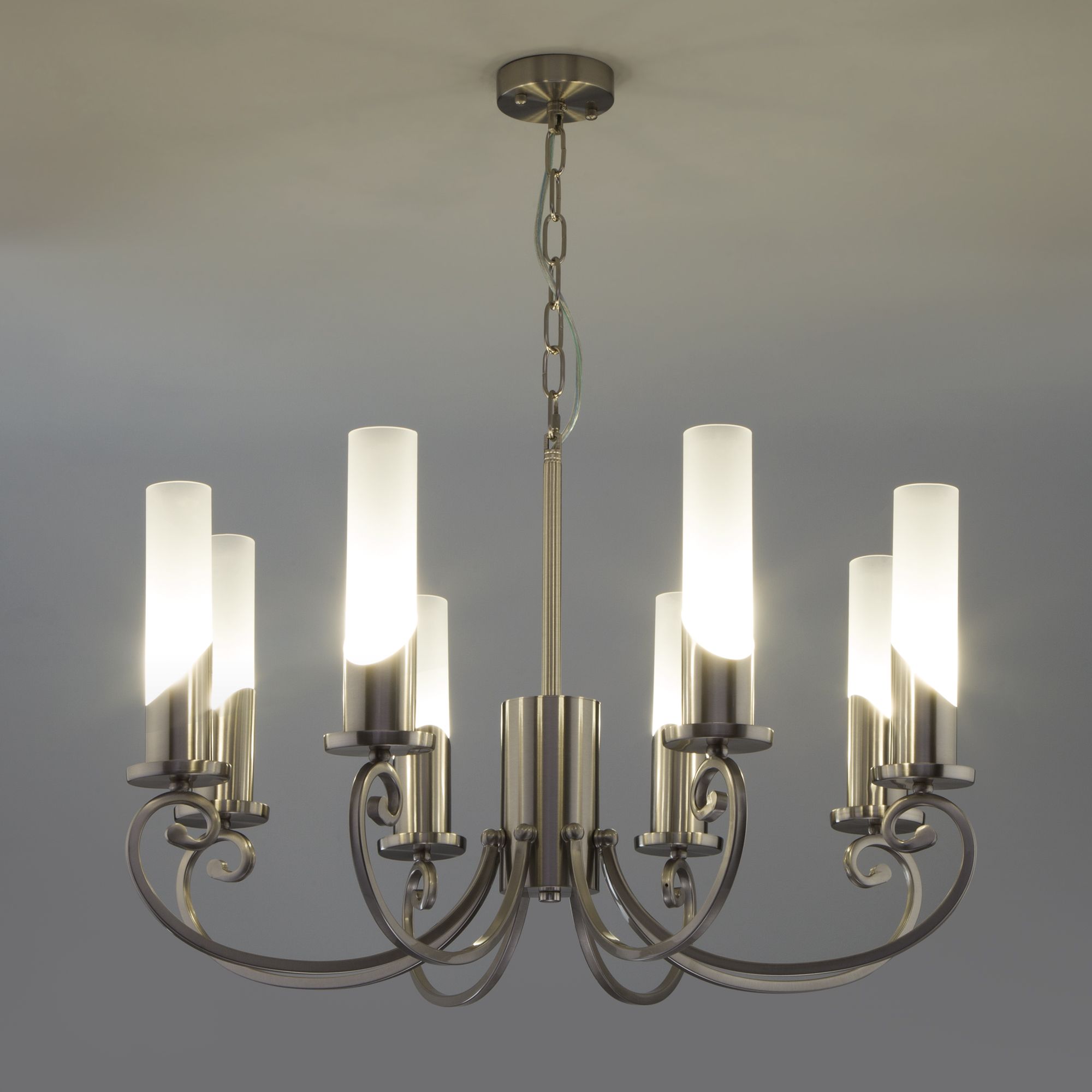 Осветительный прибор разработан в стиле Классический. Применяются лампы с цоколем E14 мощностью 60 Вт, количеством 8 шт. Цвет модели a050019: Никель.