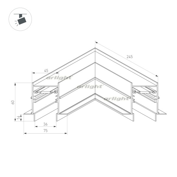 Коннектор угловой MAG-CON-4560-FDW-L90 (BK) (Arlight, IP20 Металл, 5 лет) 034681