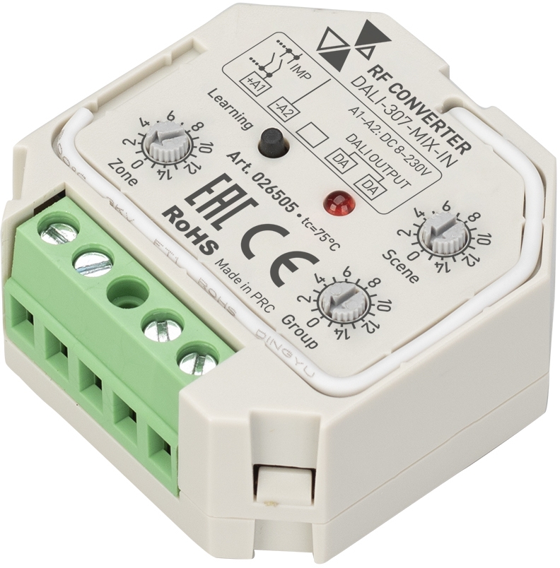 INTELLIGENT ARLIGHT Конвертер RF-сигнала DALI-307-MIX-IN (DALI-BUS, RF, PUSH) (IARL, Пластик) 026505