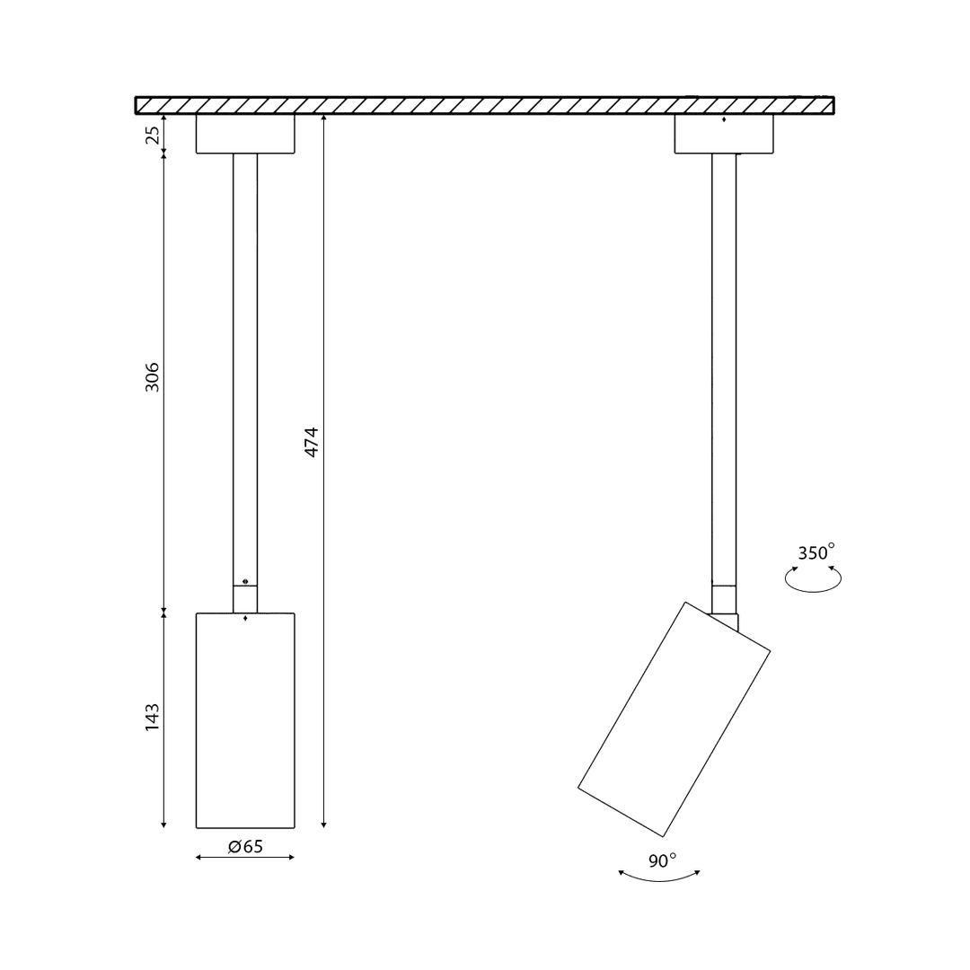 Крепление сменное М5 для светильников VILLY, поворотное накладное удлинненное, цвет Черный