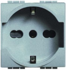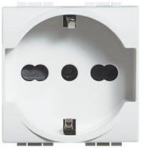 L4140/16 Розетка 2П + заземление (центр., боков.) 16А с защитными шторками 2 модуля Bticino