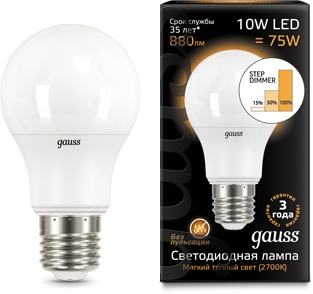 Лампочка светодиодная 102502110-S Gauss имеет основные параметры: цоколь E27, цветовая температура 2700, световой поток 880 лм/м, напряжение 220 В , влагозащита IP20, цвет Белый.