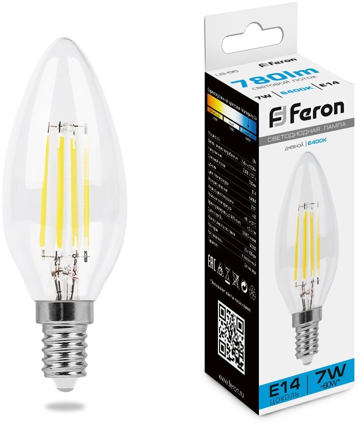 Лампочка светодиодная 38227 Feron обладает следующими основными характеристиками: цоколь E14, цветовая температура 6400, световой поток 780 лм/м, напряжение 220 В .