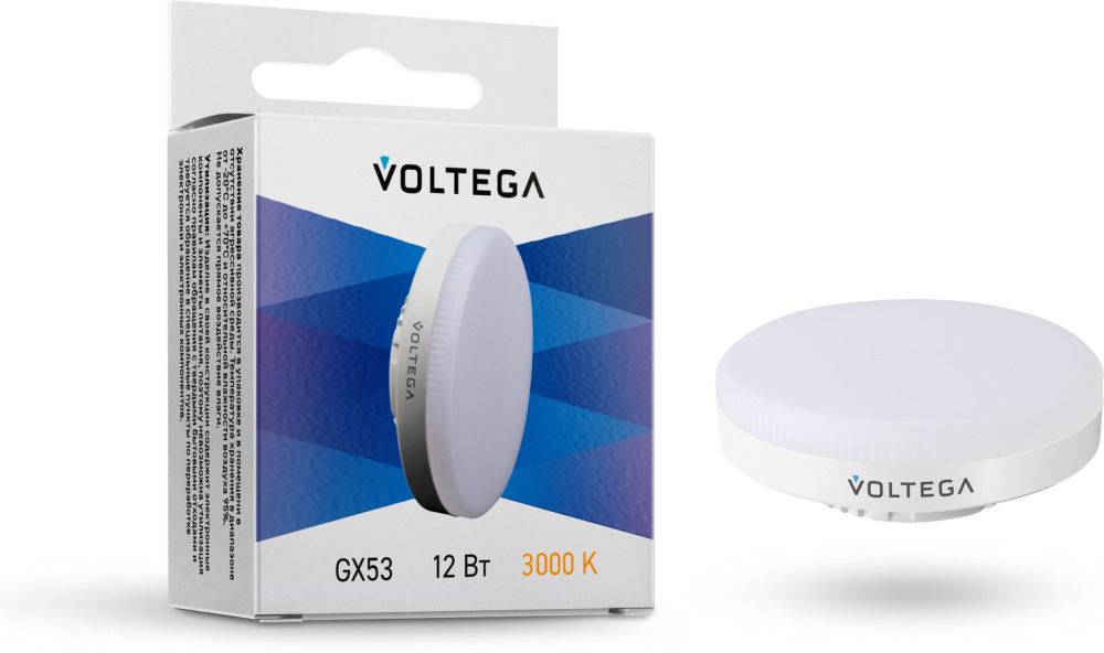 Лампочка светодиодная 7234 Voltega соответствует параметрам: цоколь GX53, цветовая температура 3000, световой поток 900 лм/м, напряжение 220 В , влагозащита IP20, цвет Белый.