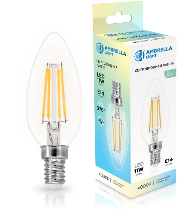 Лампочка светодиодная Bulbing 351114 Ambrella обладает следующими основными характеристиками: цоколь E14, мощность 11 Вт, цветовая температура 4000, световой поток 970 лм/м, напряжение 220 В , влагозащита IP20, цвет Прозрачный.