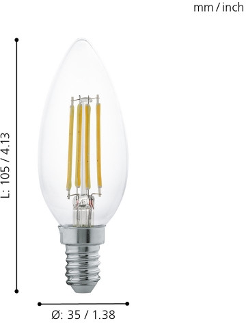 Лампочка светодиодная филаментная Lm_led_e14 11496 Eglo имеет основные параметры: цоколь E14, цветовая температура 2700, световой поток 350 лм/м, напряжение 220 В , влагозащита IP20.