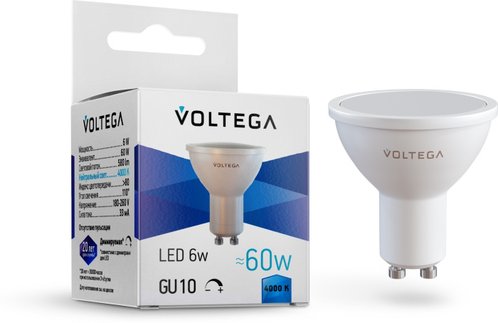 Лампочка светодиодная Simple 8458 Voltega обладает следующими основными характеристиками: цоколь GU10, цветовая температура 4000, световой поток 600 лм/м, напряжение 220 В , влагозащита IP20.
