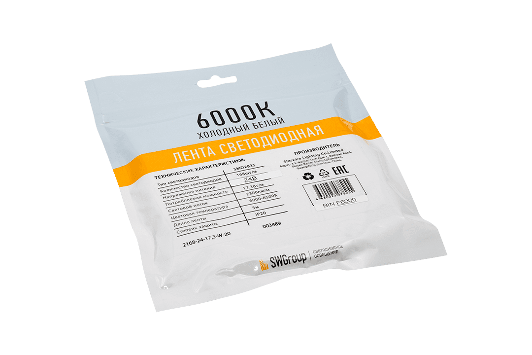 Лента светодиодная 003489 изготавливается брендом SWG и принадлежит коллекции SWG2P168. Габаритные размеры: длина 5000 мм.