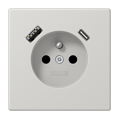LS1520F-15CALG Светло-серая Розетка франко-бельгийской системы, 1 гнездо USB типа A и 1 гнездо USB типа C Jung LS серия