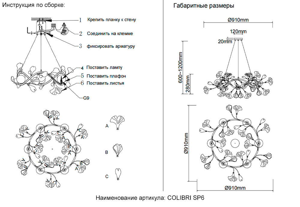 Применяются лампы с цоколем G9 мощностью 40 Вт, количеством 6 шт. Цвет модели COLIBRI SP6 GOLD: Белый.