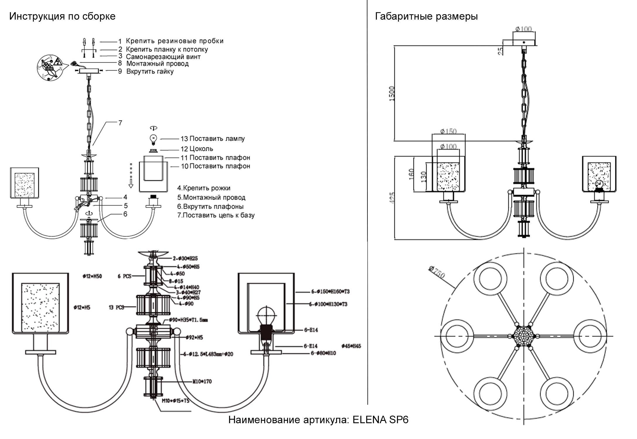 Осветительный прибор сделан в стиле Модерн. Задействуются лампочки с цоколем E14 мощностью 60 Вт, количеством 6 ед. Основной цвет модели ELENA SP6 GOLD: Белый,Золотой,Прозрачный.