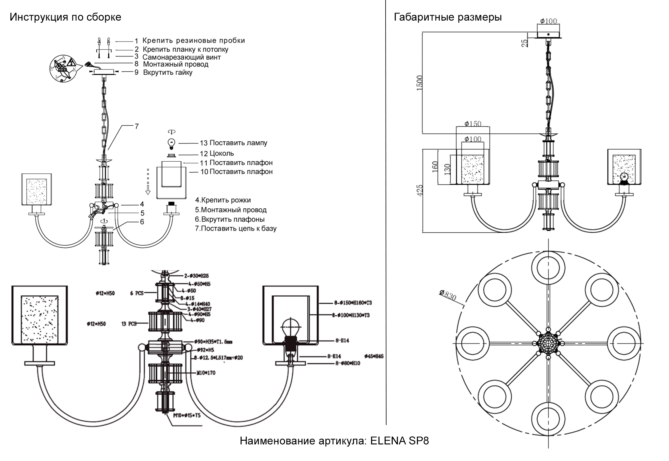Осветительный прибор сделан в стиле Модерн. Применяются лампочки с цоколем E14 мощностью 60 Вт, количеством 8 ед. Основной цвет модели ELENA SP8 GOLD: Белый,Золотой,Прозрачный.
