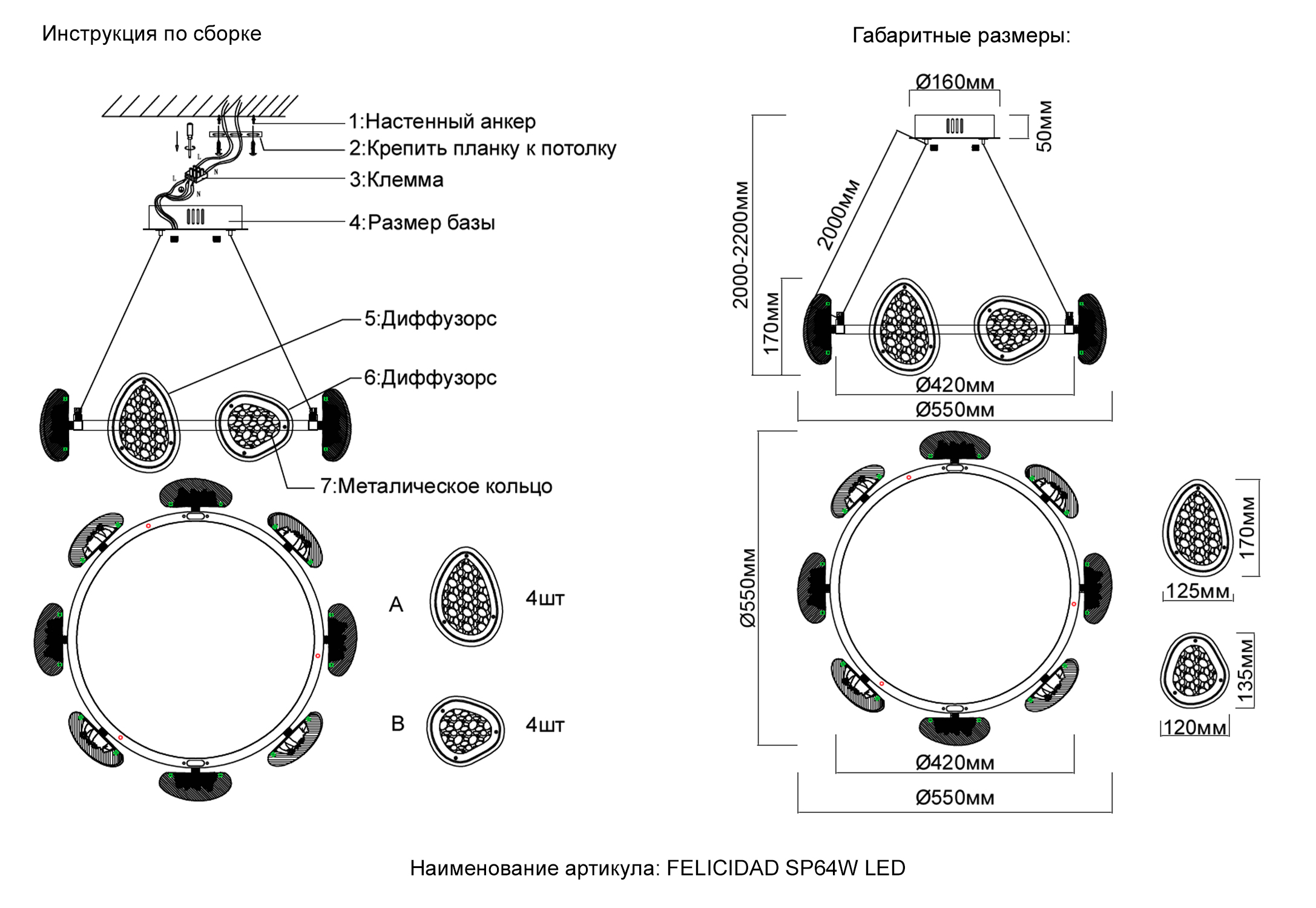 Люстра подвесная FELICIDAD SP64W LED изготавливается брендом Crystal Lux, которая относится к коллекции FELICIDAD. Размеры: высота 2220 мм, диаметр 550 мм. Люстры Crystal Lux FELICIDAD SP64W LED произведены из высококачественных и прочных материалов, таких как: металл, плафон - Акрил.