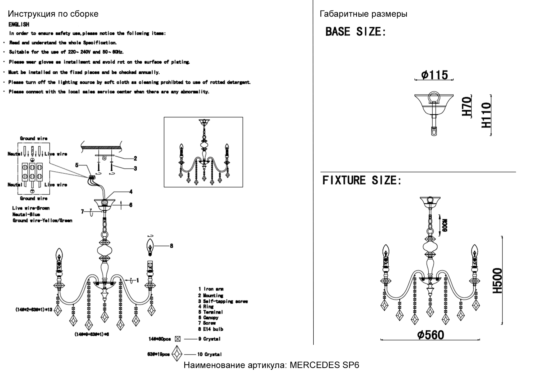 Осветительный прибор выполнен в стиле Арт-Деко. Используются лампы цоколя E14 мощностью 60 Вт, в количестве 6 шт. Основной цвет модели MERCEDES SP6 GOLD/COLOR: Золотой,Разноцветный.