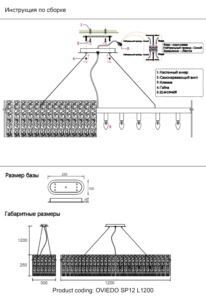 Осветительный прибор разработан в стиле Классический. Используются лампы цоколя E14 мощностью 40 Вт, в количестве 12 шт. Основной цвет модели OVIEDO SP12 L1200: Прозрачный.