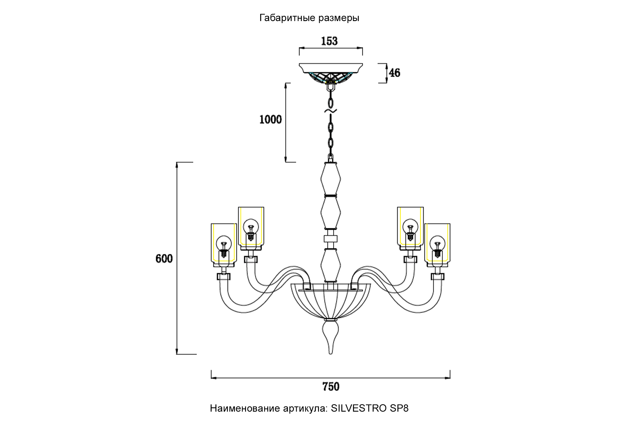 Задействуются лампы с цоколем E14 мощностью 60 Вт, количеством 8 шт. Цвет модели SILVESTRO SP8 AMBER: Янтарный.