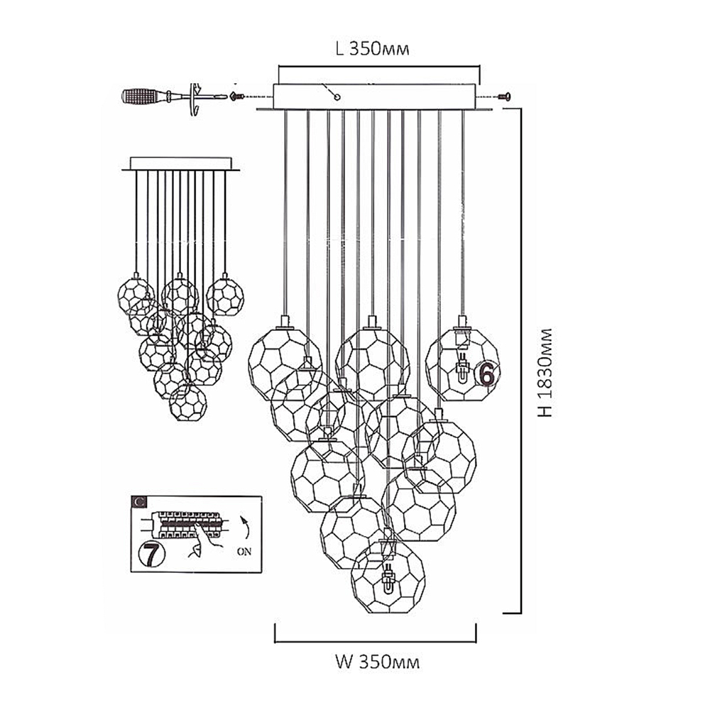 84597-22 производится брендом ImperiumLoft, которая относится к коллекции Boule de Cristal. Габариты: длина 350 мм, высота 1830 мм, ширина 350 мм, диаметр 350 мм. Подвесные люстры ImperiumLoft 84597-22 выполнены из высококачественных и прочных материалов: металл, плафон - стекло.