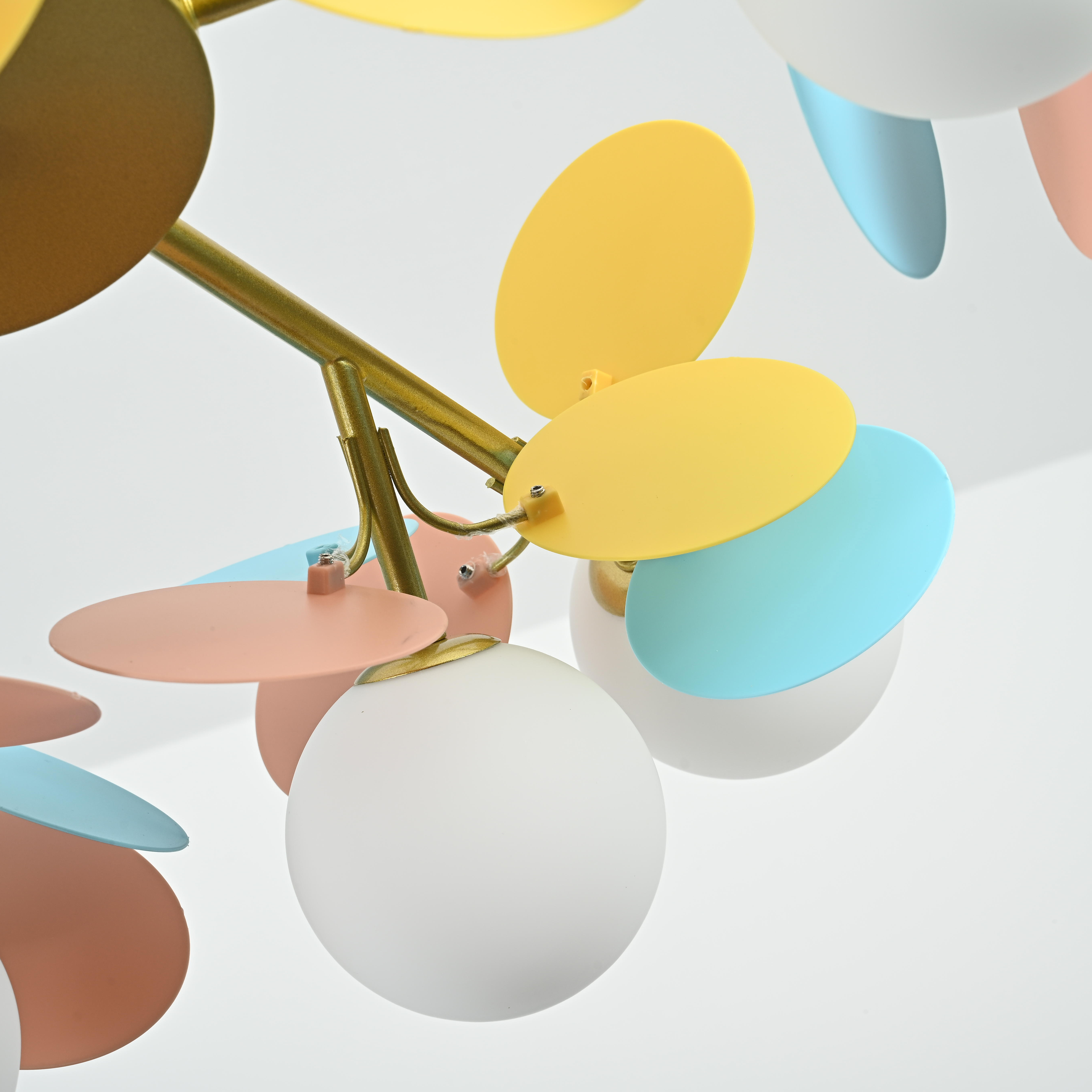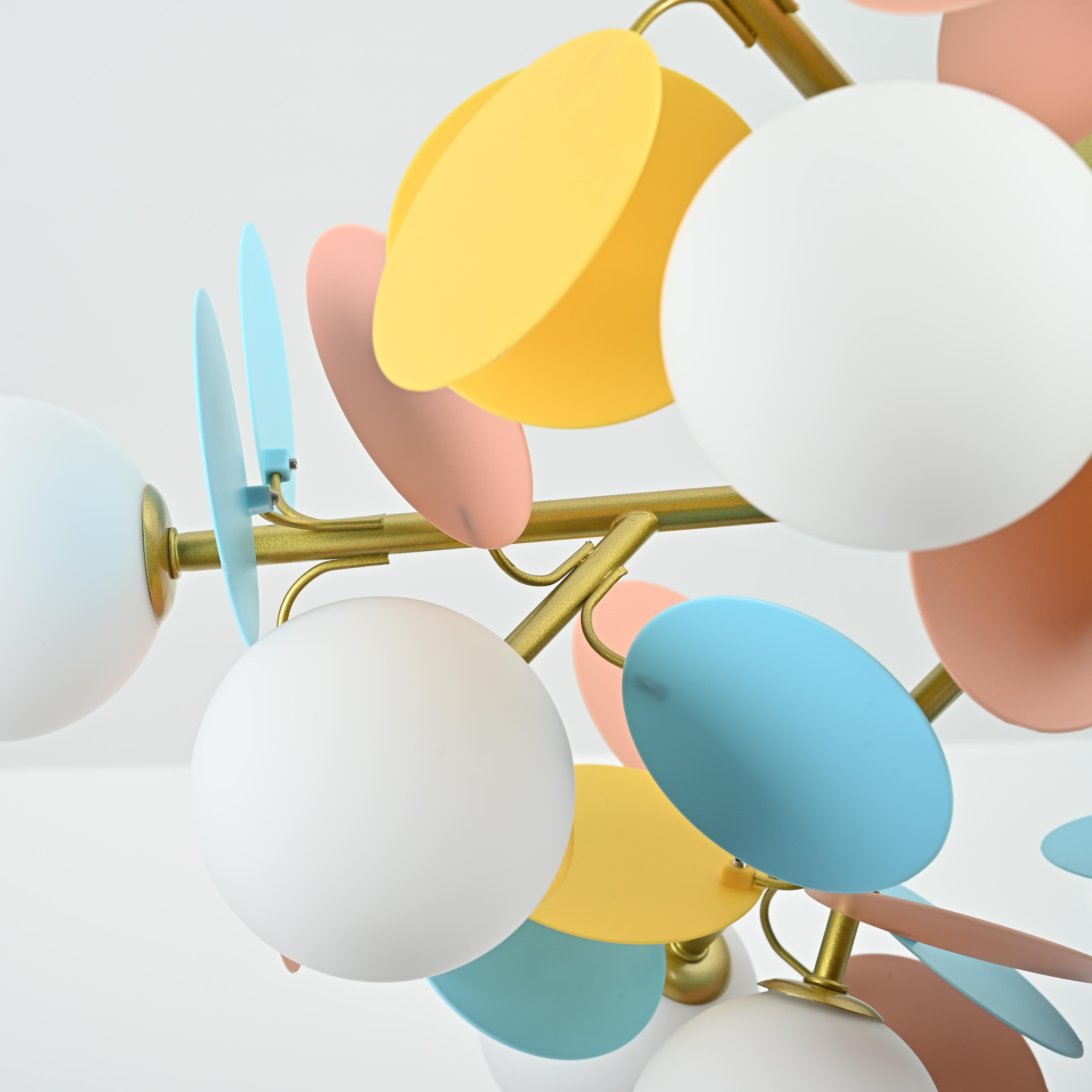 Осветительный прибор разработан в стиле Модерн. Подходят лампы с цоколем G9 мощностью 480 Вт, в количестве 12 ед. Цвет модели 189762-26: Голубой,Жёлтый,Разноцветный,Розовый.