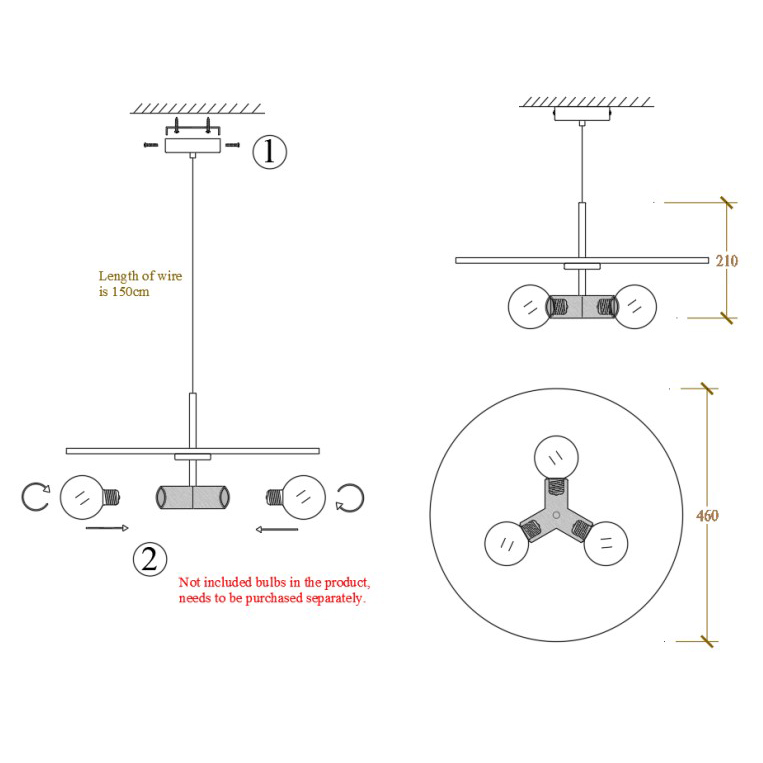 Осветительный прибор выполнен в стиле Дизайнерский. Применяются лампочки с цоколем E27 мощностью 180 Вт, в количестве 3 шт. Основной цвет модели 123645-22: Чёрный.