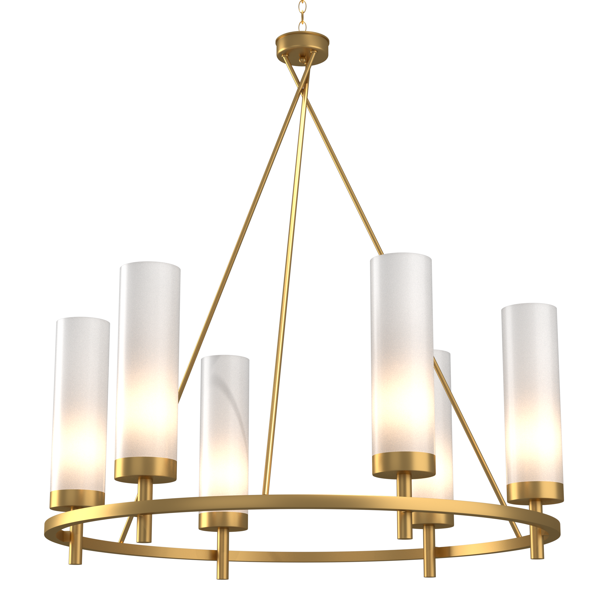 Высокие стеклянные плафоны мягко рассеивают свет, создавая камерную романтическую атмосферу в пространстве. Люстру можно разместить над обеденным столом на кухне, в спальне над кроватью либо в самом сердце гостиной — в зоне между диваном и телевизором.