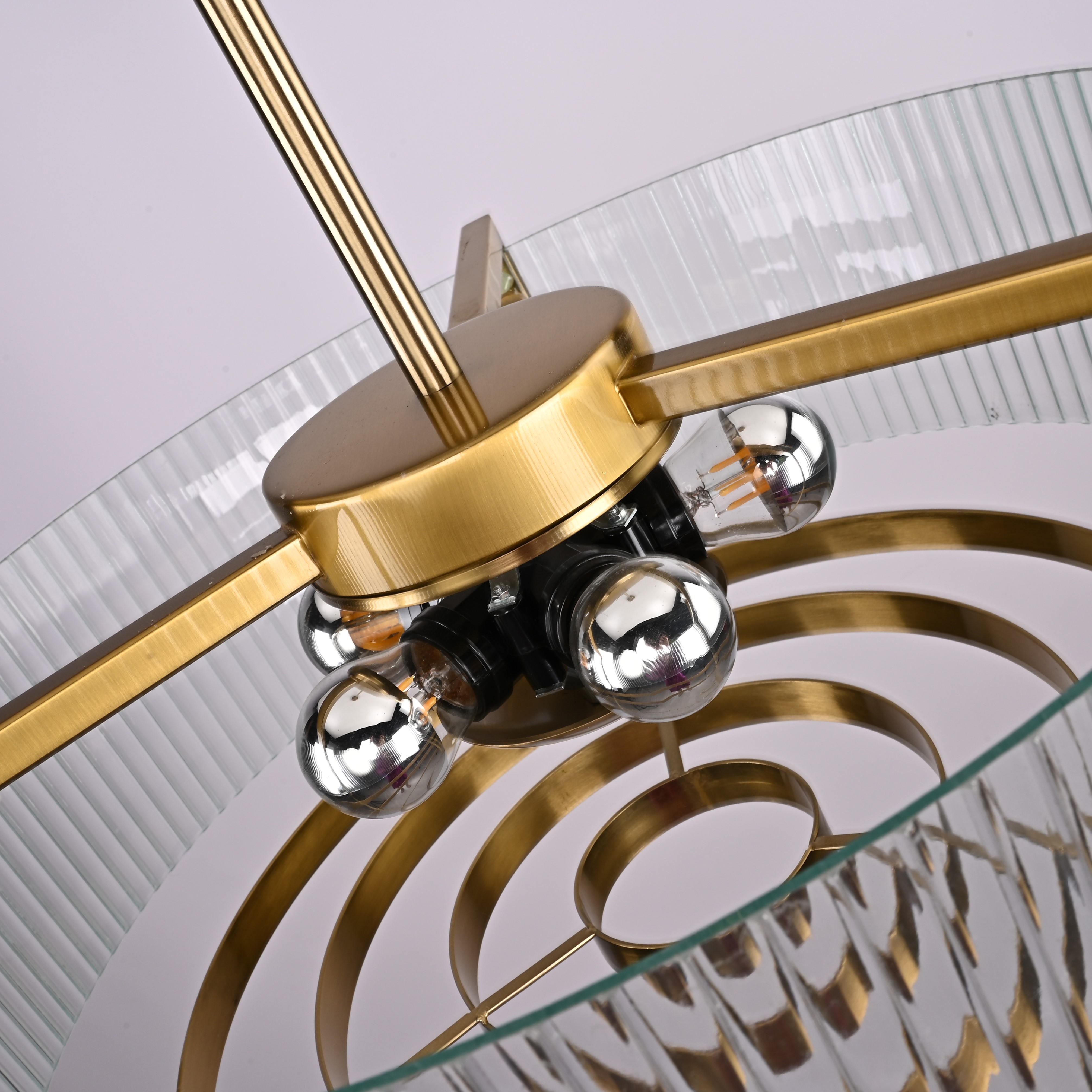 Осветительный прибор выполнен в стиле Арт-Деко. Используются лампы с цоколем E27 мощностью 300 Вт, количеством 5 шт. Цвет модели 204077-26: Прозрачный.