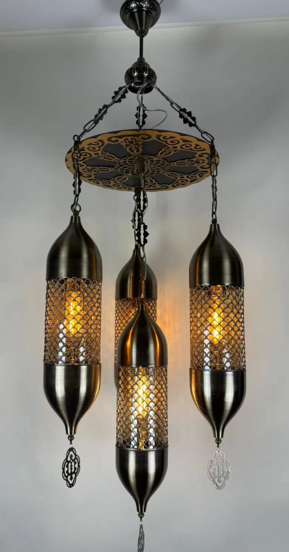 Осветительный прибор разработан в стиле Восточный. Используются лампочки цоколя E27 мощностью 160 Вт, количеством 4 шт. Цвет модели F1524-14: Янтарный.