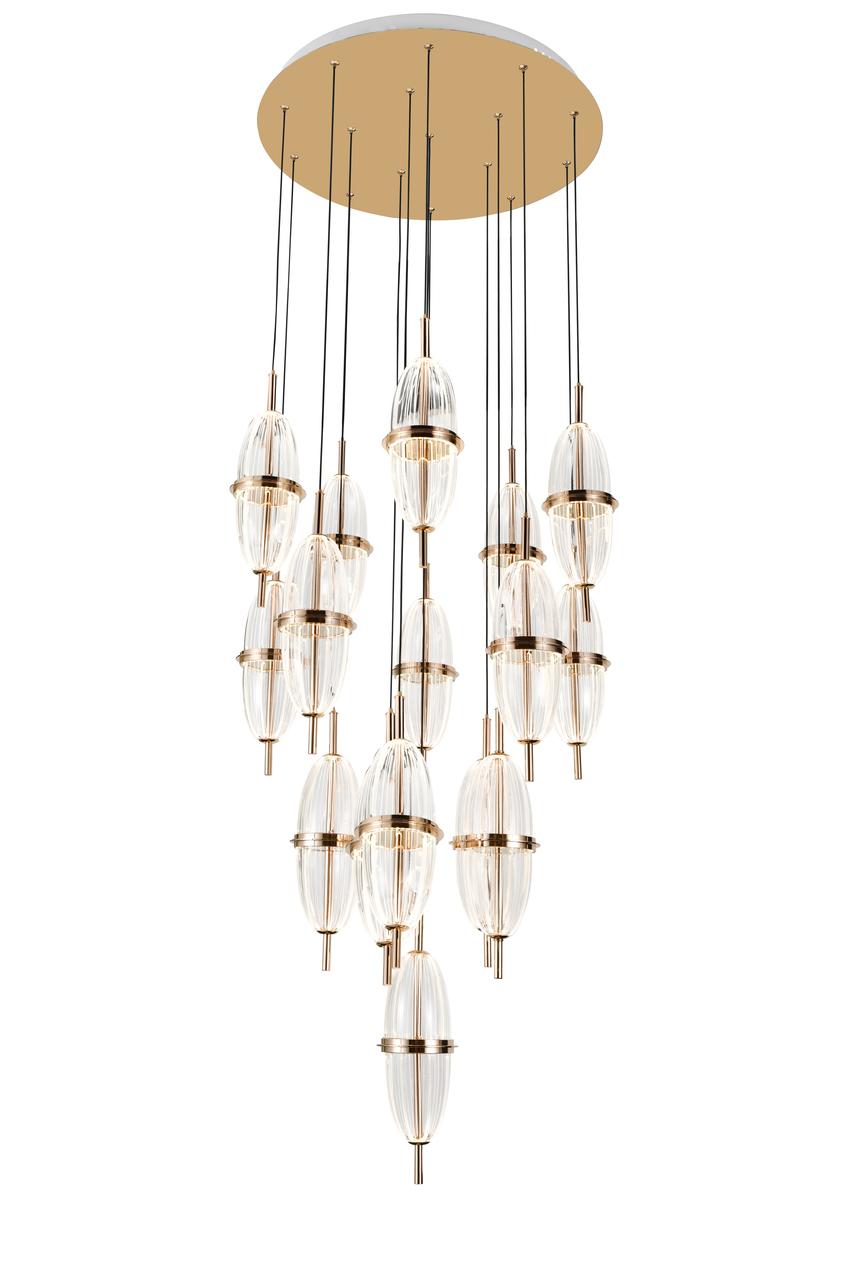 Осветительный прибор разработан в стиле Модерн. Используются лампочки цоколя LED мощностью 160 Вт, количеством 16 шт. Цвет модели F2524-06: Прозрачный.