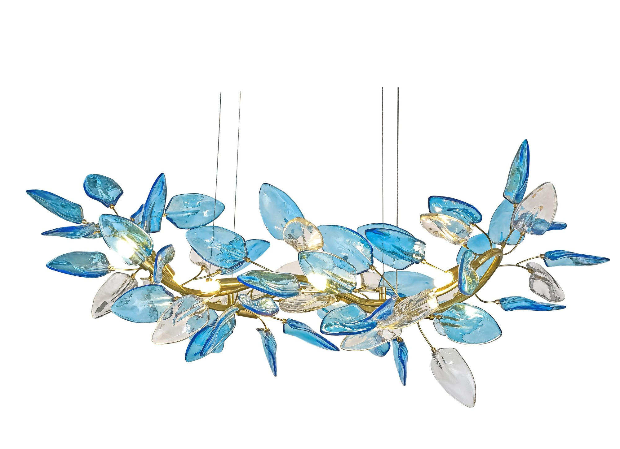 Осветительный прибор выполнен в стиле Модерн. Применяются лампочки с цоколем G9 мощностью 72 Вт, в количестве 8 шт. Основной цвет модели F3224-42: Голубой,Прозрачный,Синий.