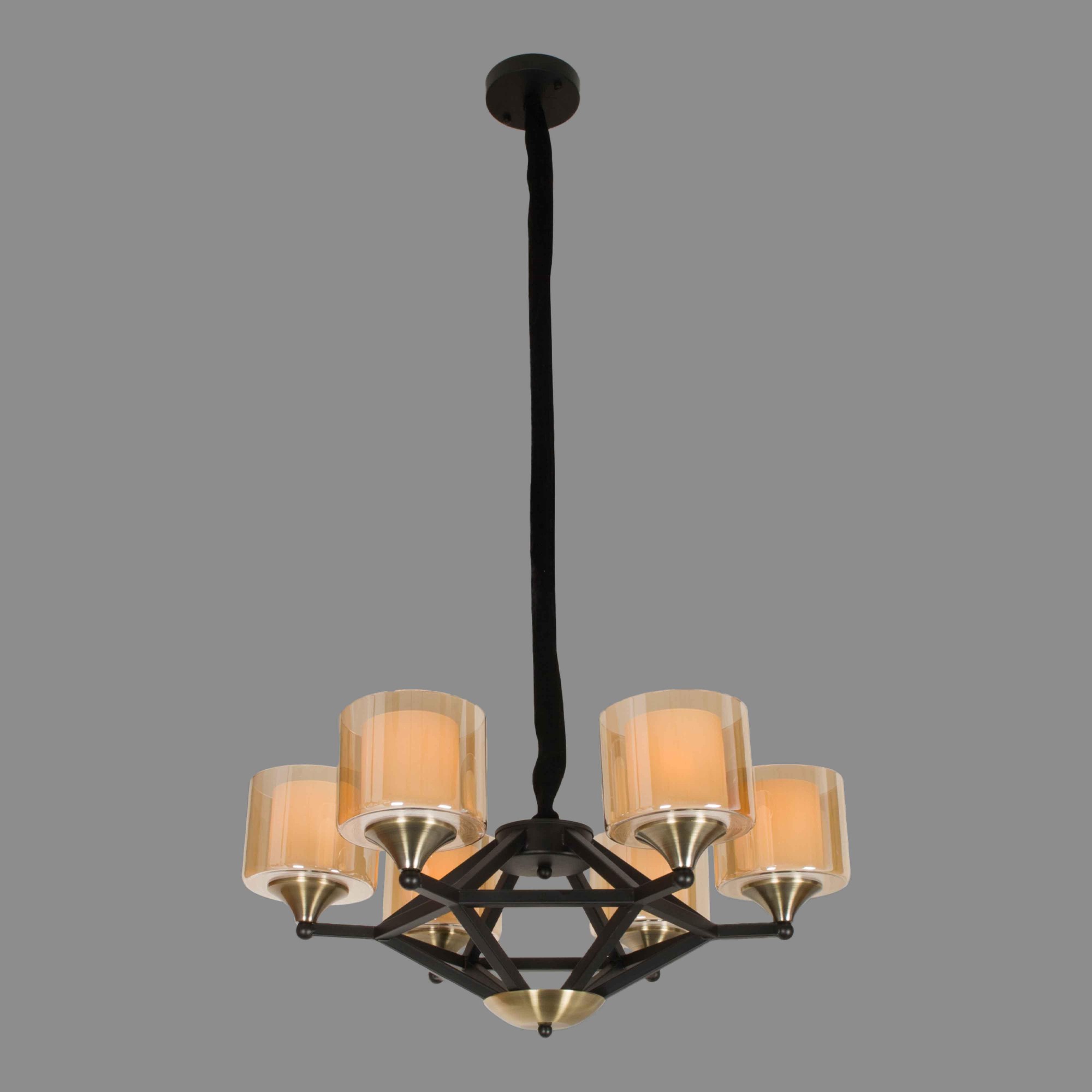 Осветительный прибор разработан в стиле Модерн. Применяются лампочки с цоколем E27 мощностью 240 Вт, количеством 6 ед. Основной цвет модели F4124-56: Янтарный.